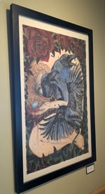 Framed in a smooth black 1” wooden frame with UV protected glass.